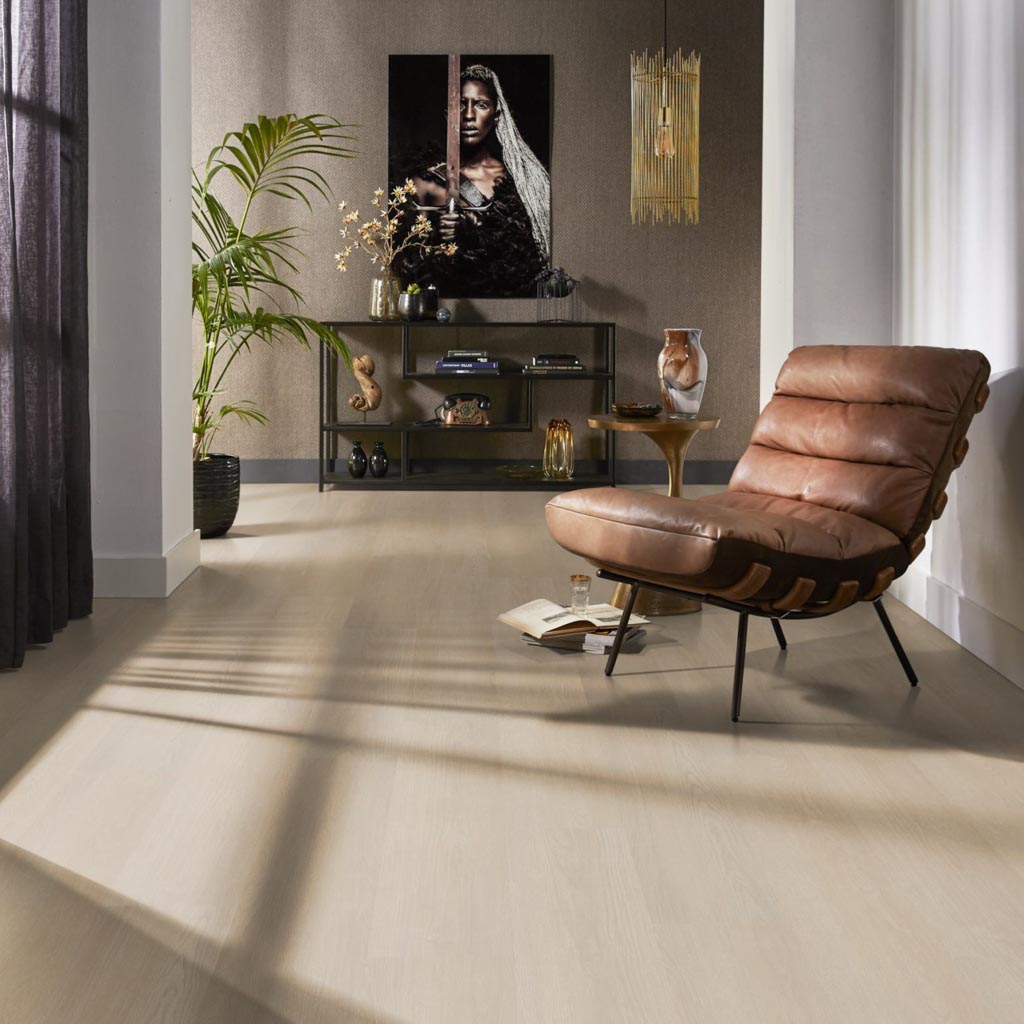De Ambiant Cavalley Beige biedt de perfecte balans tussen natuurlijke uitstraling en praktisch gebruiksgemak. Met zijn lichte beigetint en verfijnde houtstructuur brengt deze vloer rust en ruimte in elke kamer. Dankzij de matte afwerking oogt de vloer stijlvol en modern, en past hij moeiteloos in zowel een Scandinavisch, landelijk als minimalistisch interieur.