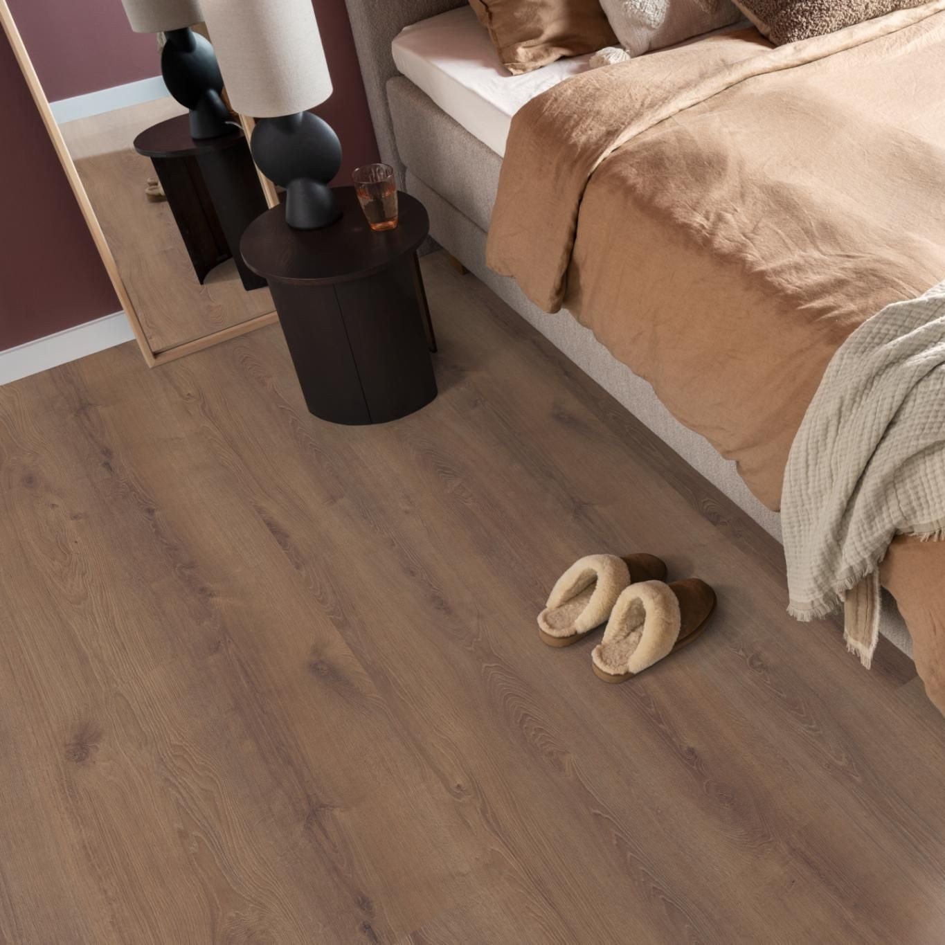 Geef je woning een warme en uitnodigende uitstraling met de Ambiant Ingelstad Plank Middenbruin Eiken. Deze elegante laminaatvloer heeft een subtiele houtstructuur in bruin eiken en een matte afwerking, waardoor hij perfect past in elk tijdloos interieur. De vloer is eenvoudig te plaatsen, onderhoudsvriendelijk en geschikt voor gebruik met vloerverwarming, ideaal voor comfortabel en stijlvol wonen.