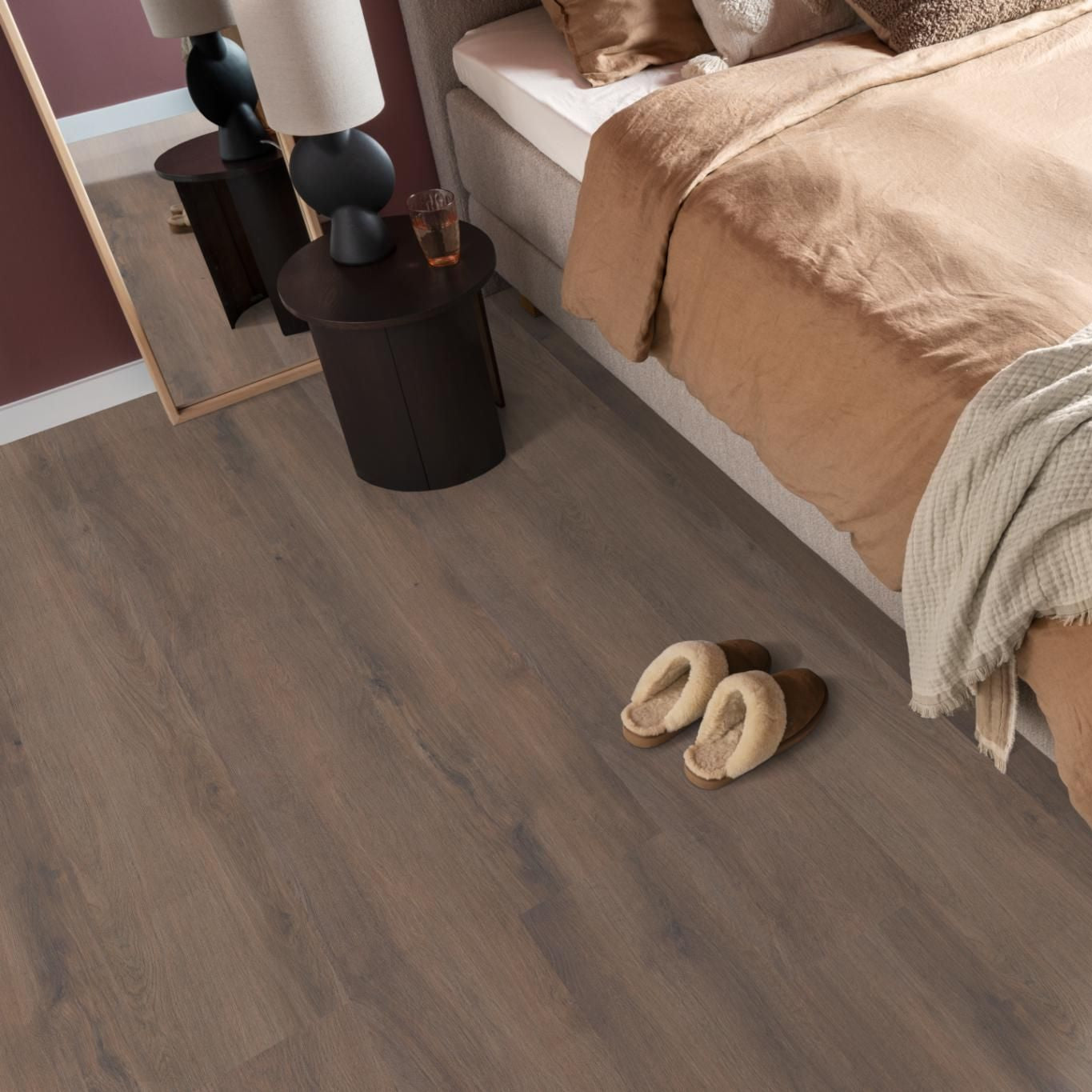 Geef je woning een warme en uitnodigende uitstraling met de Ambiant Sereno Plank Warmbruin Eiken. Deze elegante laminaatvloer heeft een subtiele houtstructuur in donkerbruin eiken en een matte afwerking, waardoor hij perfect past in elk tijdloos interieur. De vloer is eenvoudig te plaatsen, onderhoudsvriendelijk en geschikt voor gebruik met vloerverwarming, ideaal voor comfortabel en stijlvol wonen.