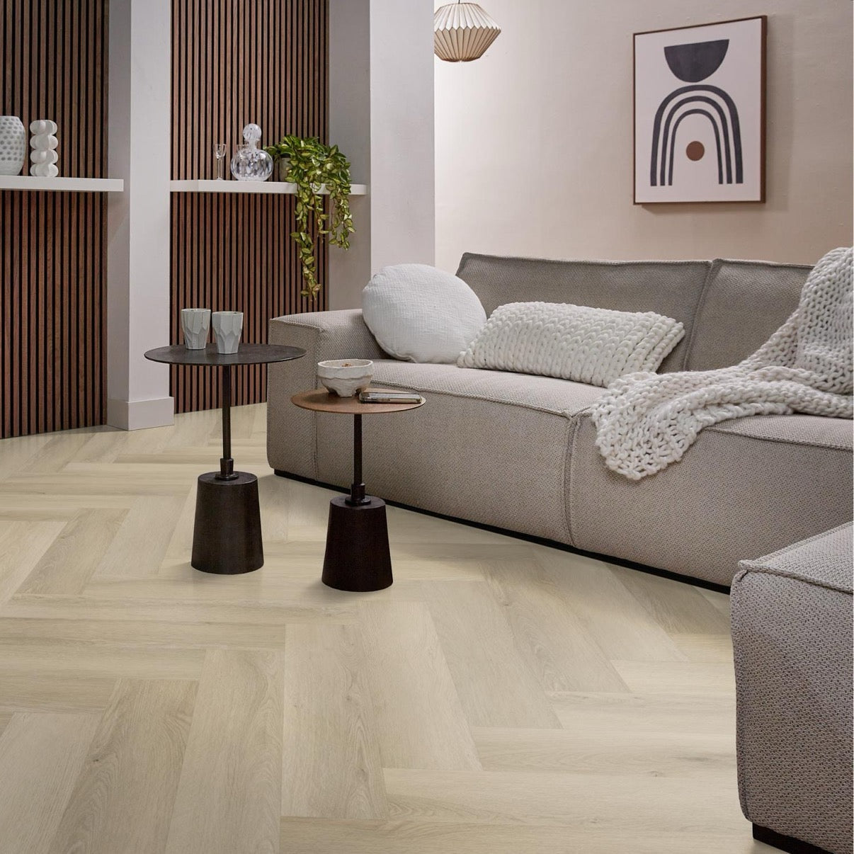 Met evc (ecologisch vloeren composiet) kies je voor een duurzame vloer die stijl en milieuvriendelijkheid combineert. Het elegante visgraatpatroon brengt een verfijnde uitstraling in je interieur, terwijl de vloer, gemaakt van meer dan 50% gerecycled materiaal, bijdraagt aan een duurzamere wereld. Dankzij de GRS-certificering en 100% recyclebaarheid biedt evc niet alleen alle voordelen van Ambiant pvc, zoals mooie designs en eenvoudige installatie, maar ook de zekerheid dat je kiest voor een vloer die goed is voor het milieu én jouw woonruimte.
