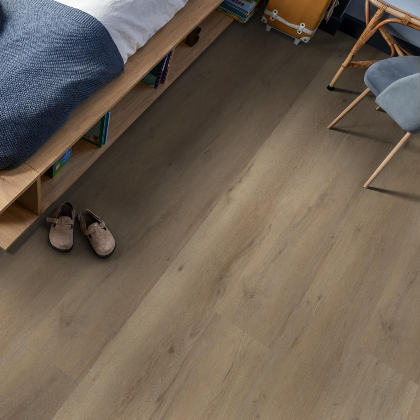 Dankzij de Dryback-installatie ligt de vloer strak en stabiel. Bovendien is hij slijtvast, geluiddempend en geschikt voor vloerverwarming. Ook in ruimtes zoals de keuken of hal komt deze waterbestendige vloer uitstekend tot zijn recht.