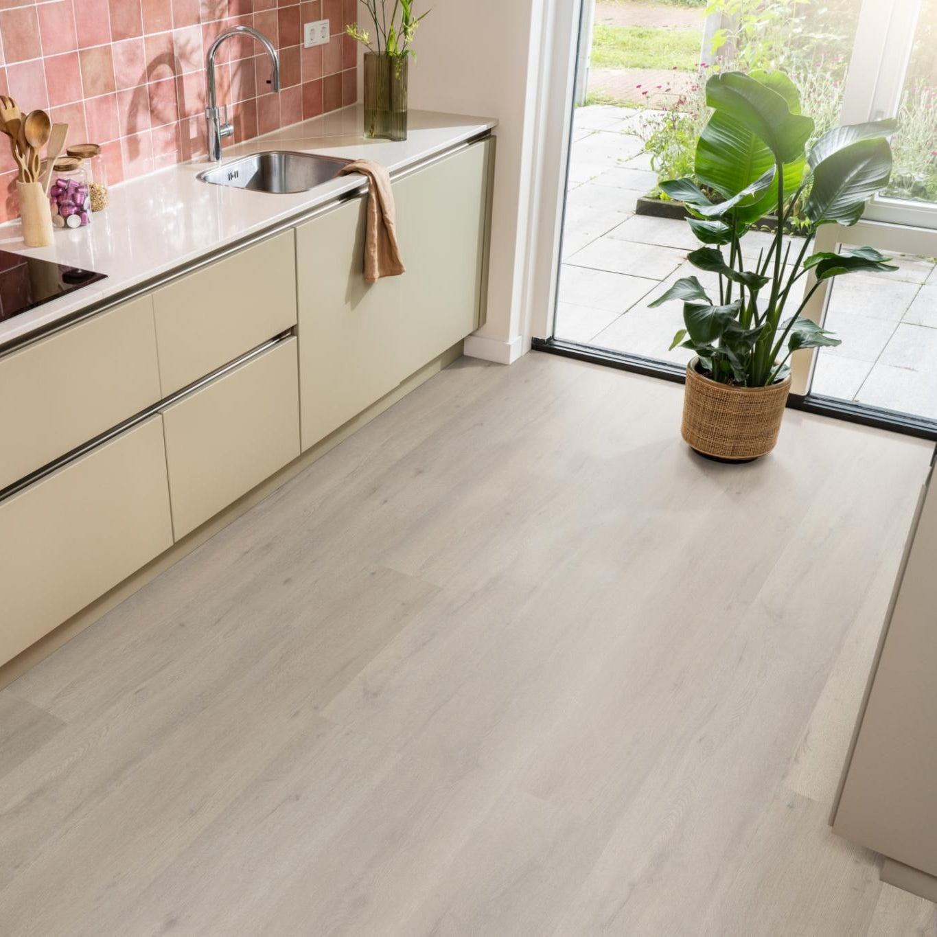 De Vivero is een prachtige comfortabele pvc vloer, met extra lange planken van 152 cm. Hierdoor lijkt het alsof je ruimte een stuk groter is. De vloer bezit een aantal fantastische eigenschappen, zo is de Vivero geschikt voor vloerverwarming, waterbestendig en wordt het contactgeluid verminderd. De pvc vloer heeft een ‘embossed in register’ (EIR) afwerking. Daardoor zie je niet alleen patronen en noesten, maar voel je ze ook!