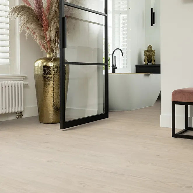 De Douwes Dekker Ambitieus Cheesecake is een elegante plak-PVC vloer met een lichte, natuurlijk ogende eikenstructuur. Dankzij het subtiele dessin en de rustige kleurtint brengt deze vloer een warme en tijdloze sfeer in elke ruimte. De dryback (plak) installatie zorgt voor een strakke afwerking en langdurige stabiliteit – perfect voor zowel woonruimtes als intensiever gebruikte omgevingen.