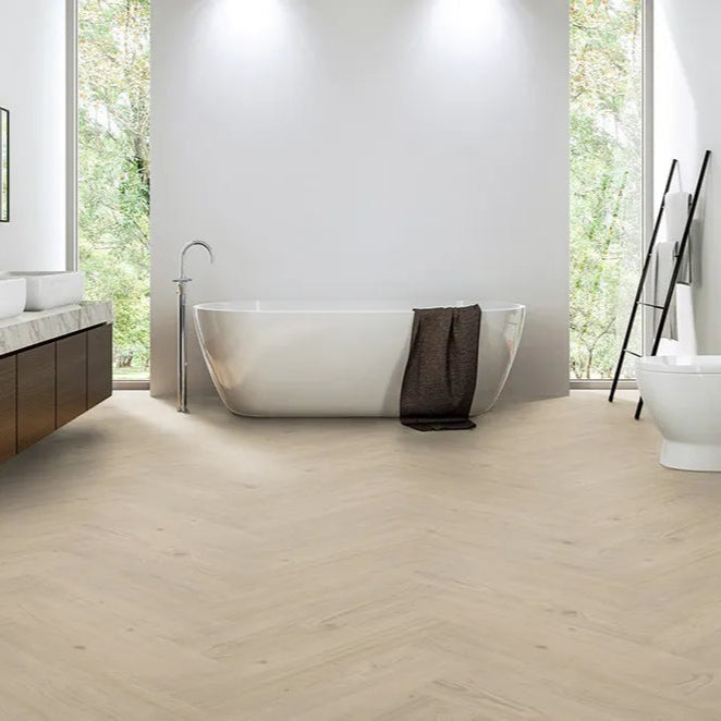 Breng tijdloze elegantie in huis met de Douwes Dekker Ambitieus Cheesecake Dryback Visgraatvloer. Deze hoogwaardige plak-PVC vloer combineert de lichte uitstraling van natuurlijk eikenhout met het moderne gemak van een duurzame, onderhoudsvriendelijke afwerking. Het verfijnde visgraatpatroon geeft elke ruimte een luxe en stijlvolle uitstraling – ideaal voor zowel klassieke als moderne interieurs.