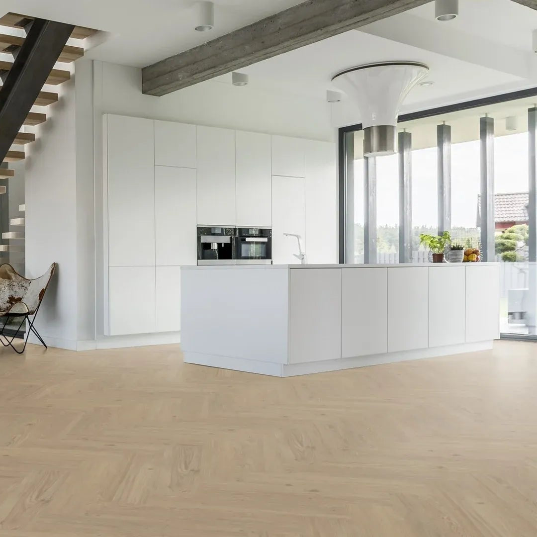 Breng tijdloze elegantie in huis met de Douwes Dekker Ambitieus Tiramisu Dryback Visgraatvloer. Deze hoogwaardige plak-PVC vloer combineert de lichte uitstraling van natuurlijk eikenhout met het moderne gemak van een duurzame, onderhoudsvriendelijke afwerking. Het verfijnde visgraatpatroon geeft elke ruimte een luxe en stijlvolle uitstraling – ideaal voor zowel klassieke als moderne interieurs.