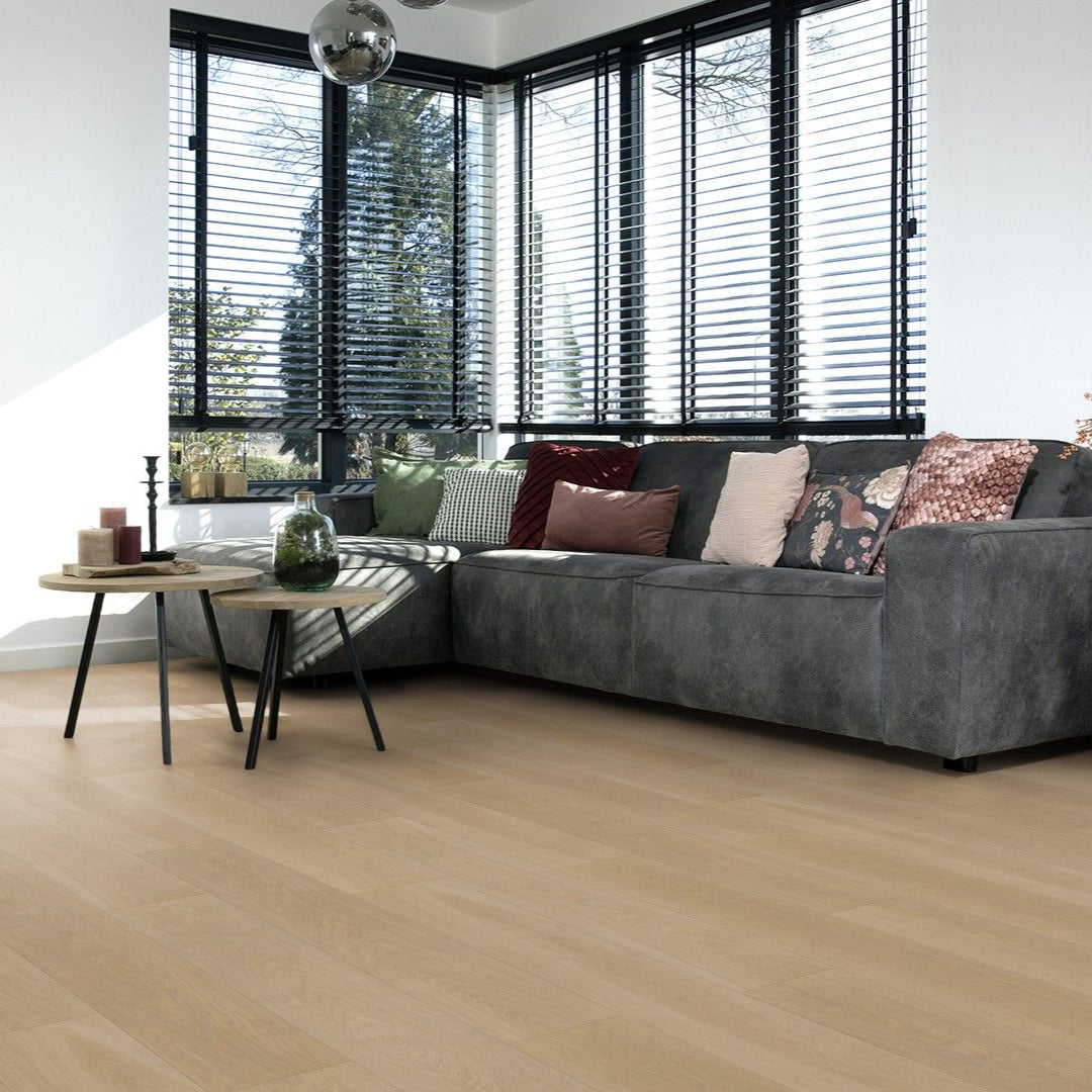 Breng warmte en natuurlijke sfeer in huis met de Douwes Dekker Trots Solide Plank Kervel. Dit stijlvolle laminaat heeft een warme houtstructuur en een matte afwerking, perfect voor een tijdloos interieur. De vloer is 100% waterbestendig, eenvoudig te leggen, onderhoudsvriendelijk en geschikt voor vloerverwarming.