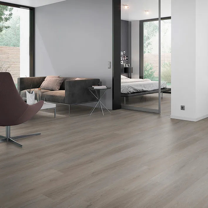 De LS Flooring English Oak Taupe is een elegante plak-PVC vloer met een taupe, natuurlijk ogende eikenstructuur. Dankzij het subtiele dessin en de rustige kleurtint brengt deze vloer een warme en tijdloze sfeer in elke ruimte. De dryback (plak) installatie zorgt voor een strakke afwerking en langdurige stabiliteit – perfect voor zowel woonruimtes als intensiever gebruikte omgevingen.