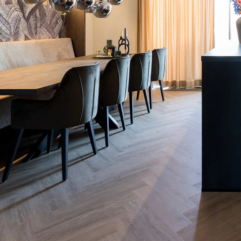 Een vloer met visgraat motief is tegenwoordig razend populair. De Yup Leyton visgraat heeft de uitstraling van een houten visgraat vloer, maar met de voordelen van een pvc vloer. Eén van de voordelen is dat de vloer eenvoudiger te plaatsen is, de vloer hoeft namelijk niet meer gezaagd te worden. Vakmanschap op maat, geschikt voor elk interieur. Daarnaast is pvc erg onderhoudsvriendelijk én waterbestendig.